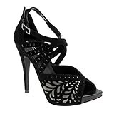 Suede sandals showcasing crisscross straps, adjustable ankle tie and intricate cutouts on both sides. Concealed platform design. Perfect for a special occasion or a night out on the town. Read more