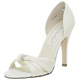- Elegant, open toe shoe with a pleated, criss-cross vamp.