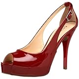 These Hondo pumps from Guess by Marciano have a classy yet smooth modern look. Faux patent leather, animal-print textile or croc embossed upper in a platform dress pump style with an almond peep toe. Buckled ankle closure with elastic relief. Cut away sides nicely contrast with the overlasted forefoot. Sueded heel cup, smooth lining, and a cushioned footbed. 3/4 inch partially hidden platform midsole. Rubber traction outsole and a 4 1/4 inch painted stiletto heel. Read more