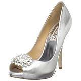 Nothing says classy and sophistication like a satin bedazzled pump. Badgley Mischka never fails to deliver stunningly beautiful evening shoes. The Lissa features a gorgeous rhinestone brooch that sits on the top of its peep-toe providing tons of glitz and glam to your evening lookSatin upper4 3/4" Heel1/2" Hidden platformLeather liningLeather soleStyle Name: LissaAdd lovely dazzle to your eveningwear with the Lissa pump from Badgley Mischka. This sleek, classic silhouette opens at the toe with a sparkling ornament to glint and gleam as you twirl across the ballroom floor. A sensuous lift gives you a nice boost in this must-have. Read more